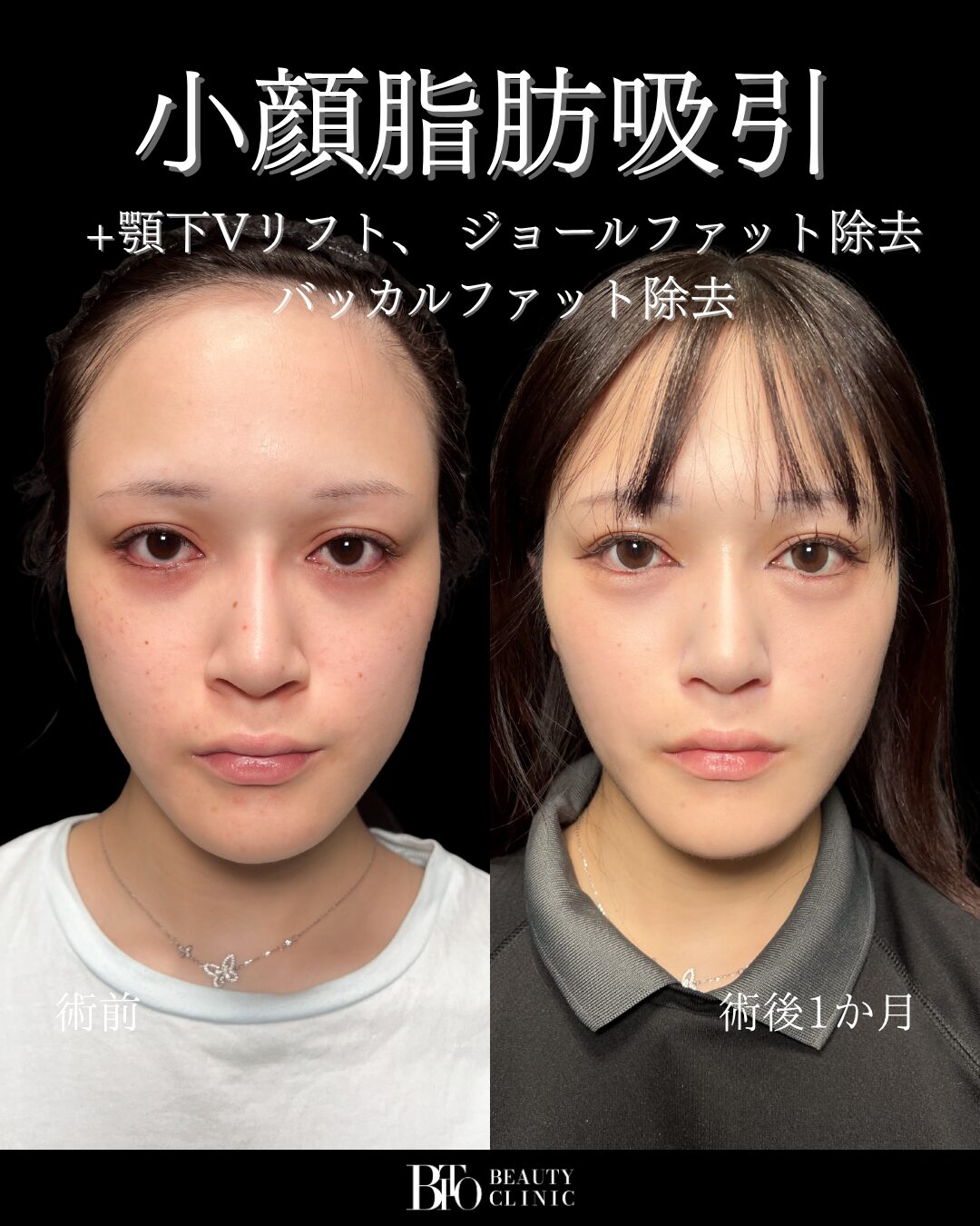 腫れは術後3日目をピークに、1週間程度で徐々に改善します。内出血が出ることもありますが、約1〜2週間で落ち着きます。脂肪除去による輪郭の変化は1ヶ月ほどで安定し、3ヶ月後が完成イメージとなります。