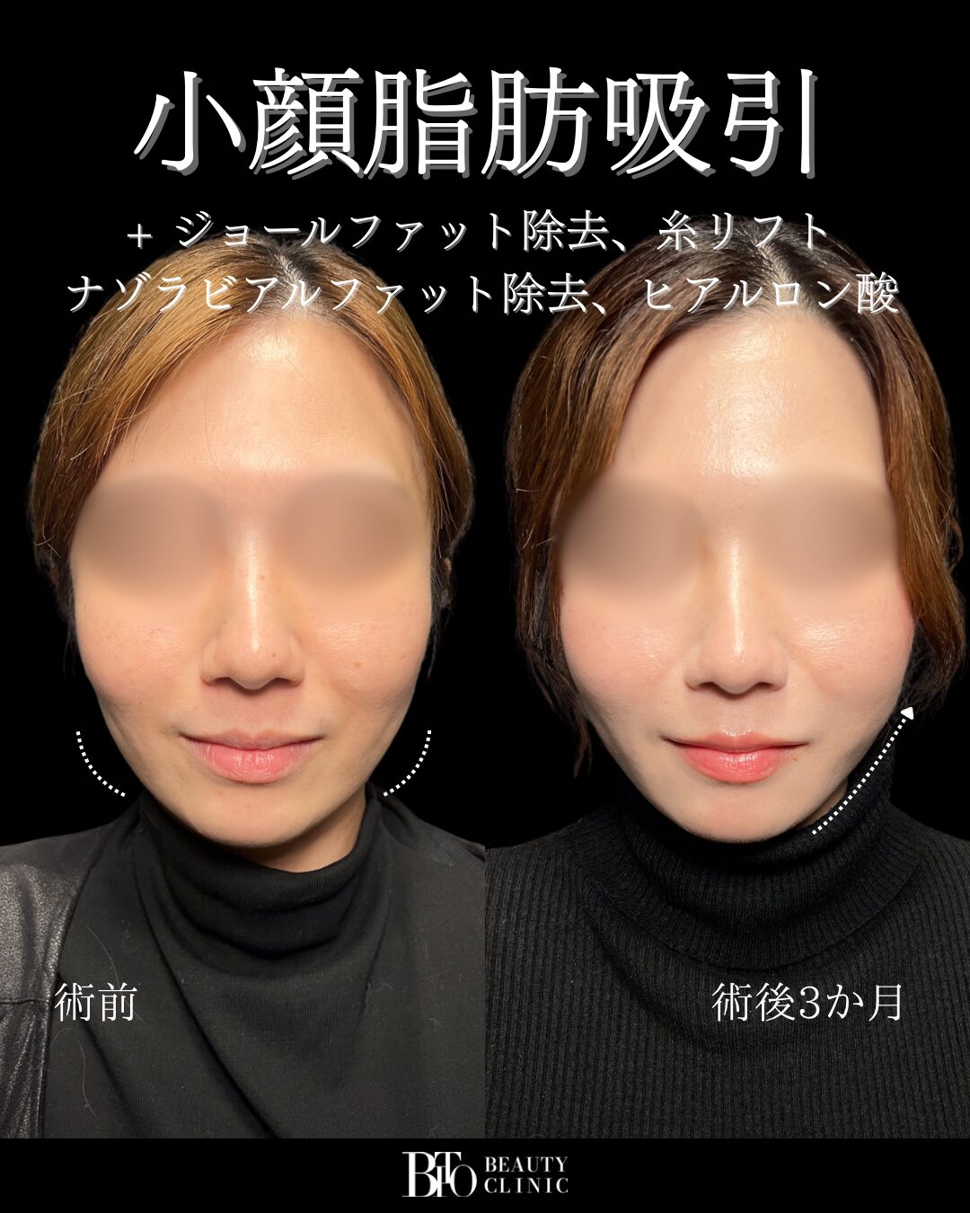 必要に応じて、両部位を同時に除去することも可能です。たるみ・下膨れが複合的に起きている場合、両方の脂肪を取り除くことで相乗的な効果が得られます。