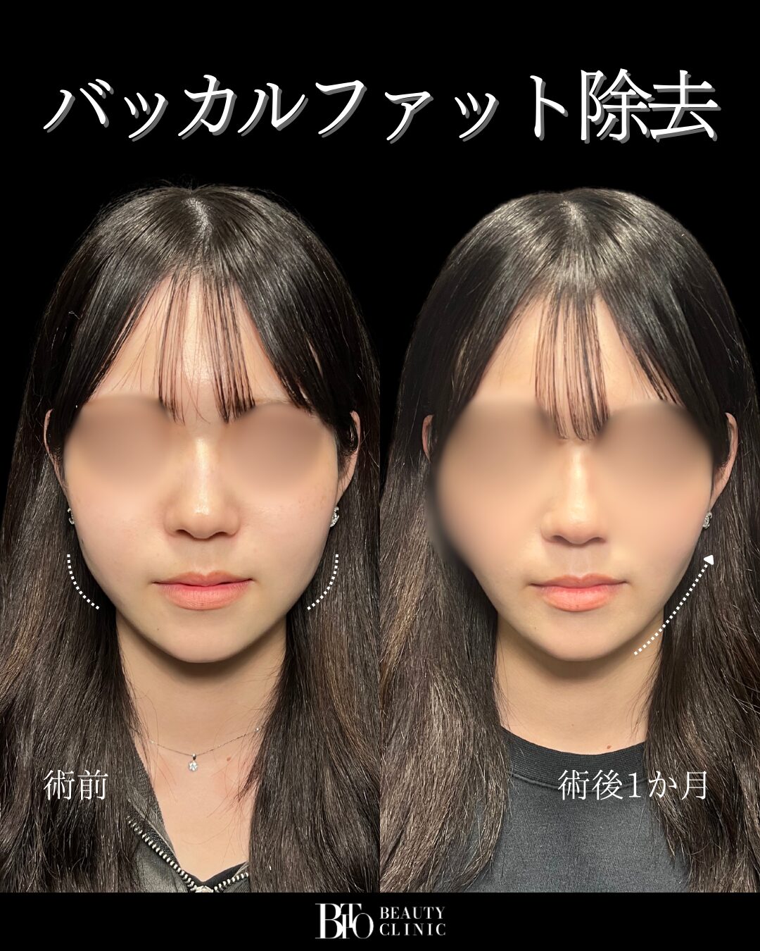 また、バッカルファットは脂肪の性質として燃焼しづらく、ダイエットでは減らないため、外科的に除去しない限り根本的な改善は困難です。適切に除去することで、フェイスラインの立体感や頬の陰影が整い、すっきりと若々しい印象に近づけることができます。