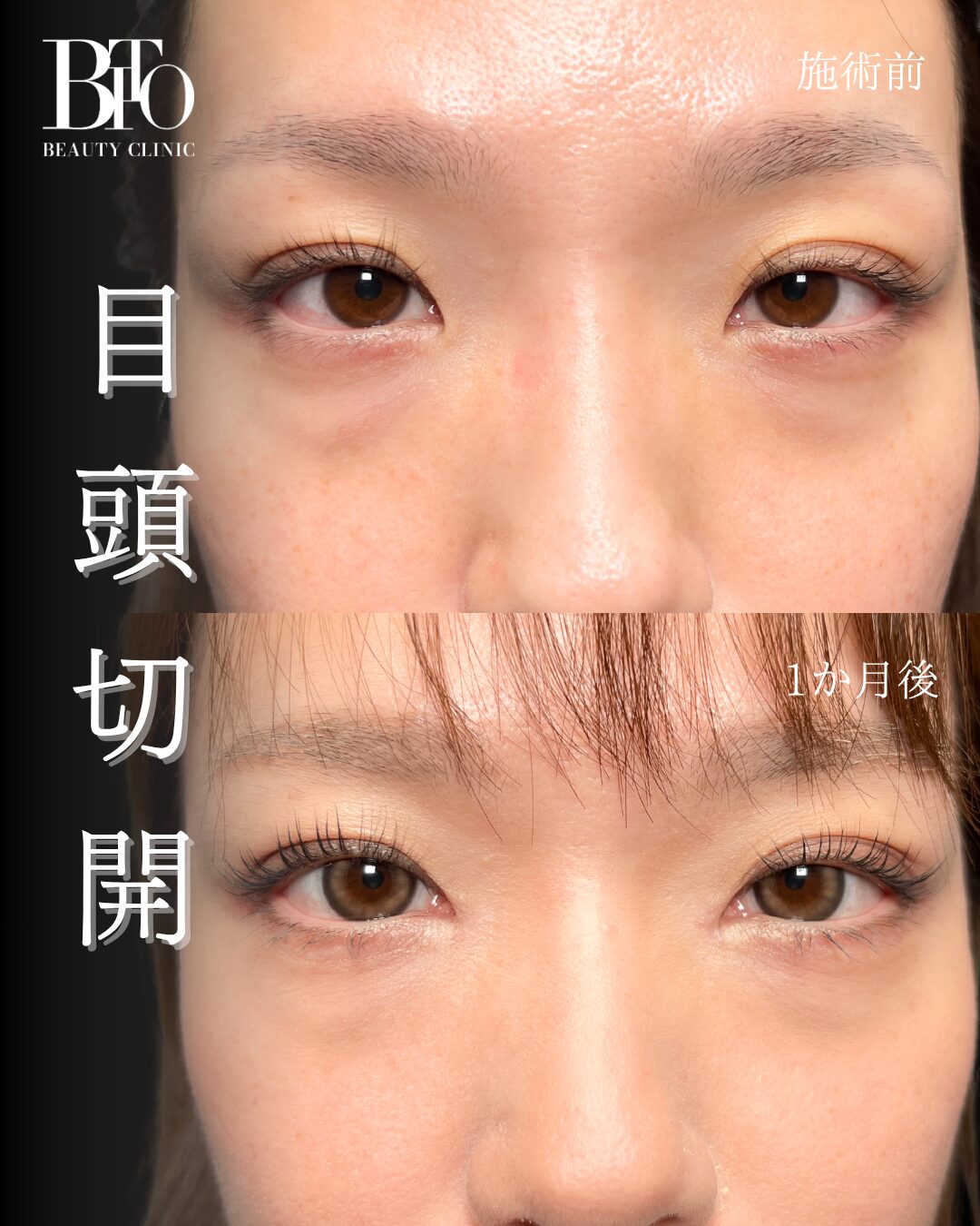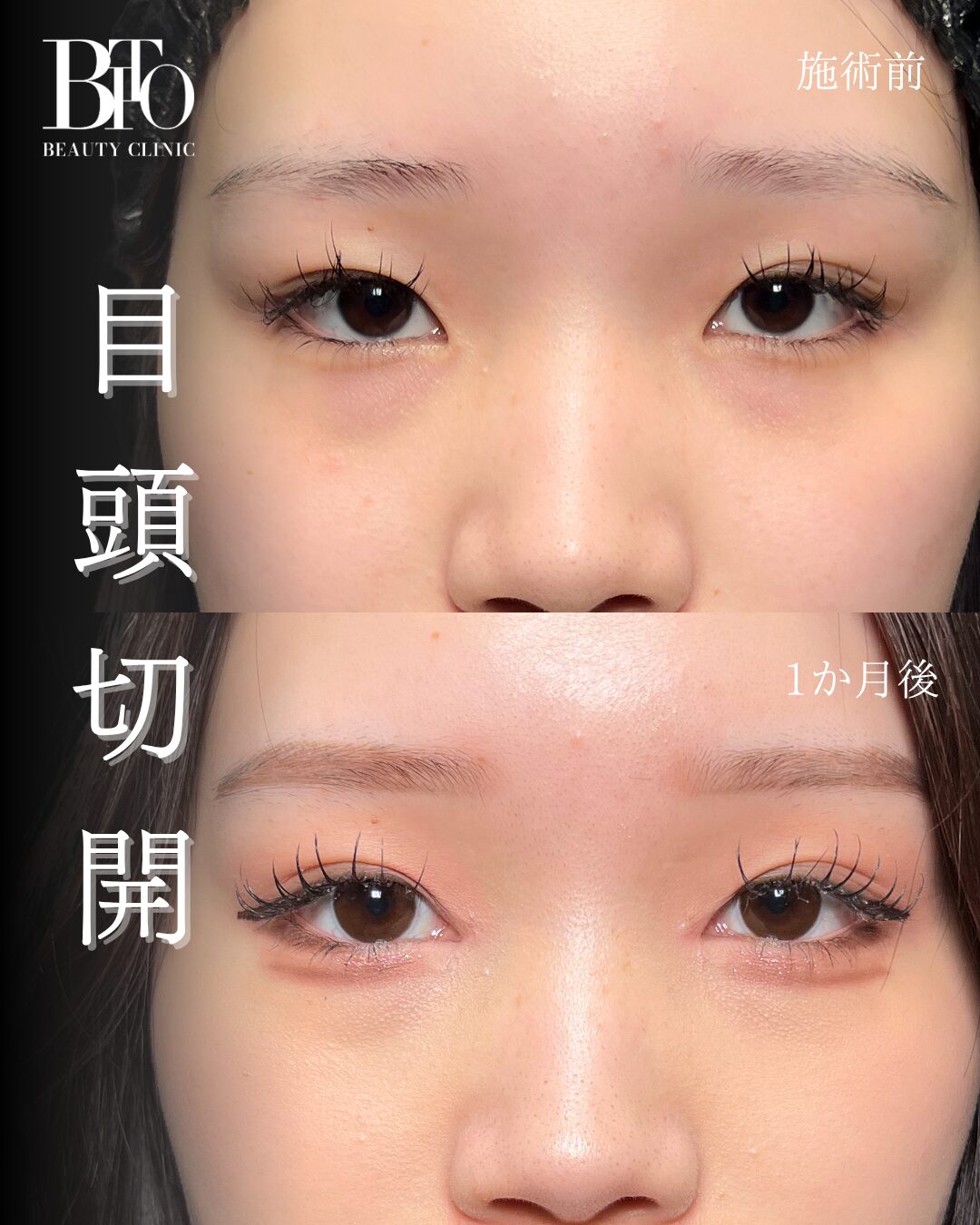二重施術との併用時には、二重ラインの目頭の際まで美しく入るようなデザインを追求します。