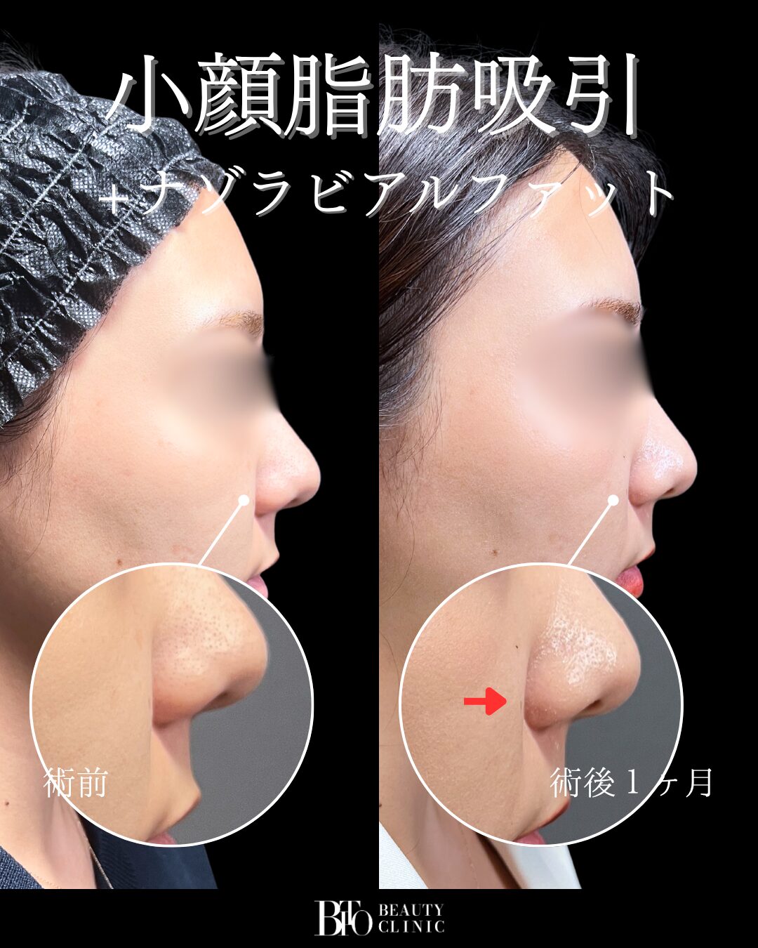 ナゾラビアルファットの突出度、周囲の脂肪(メーラーファット・皮下脂肪)の厚みを総合的に評価し、除去が有効かどうかを正確に判断します。